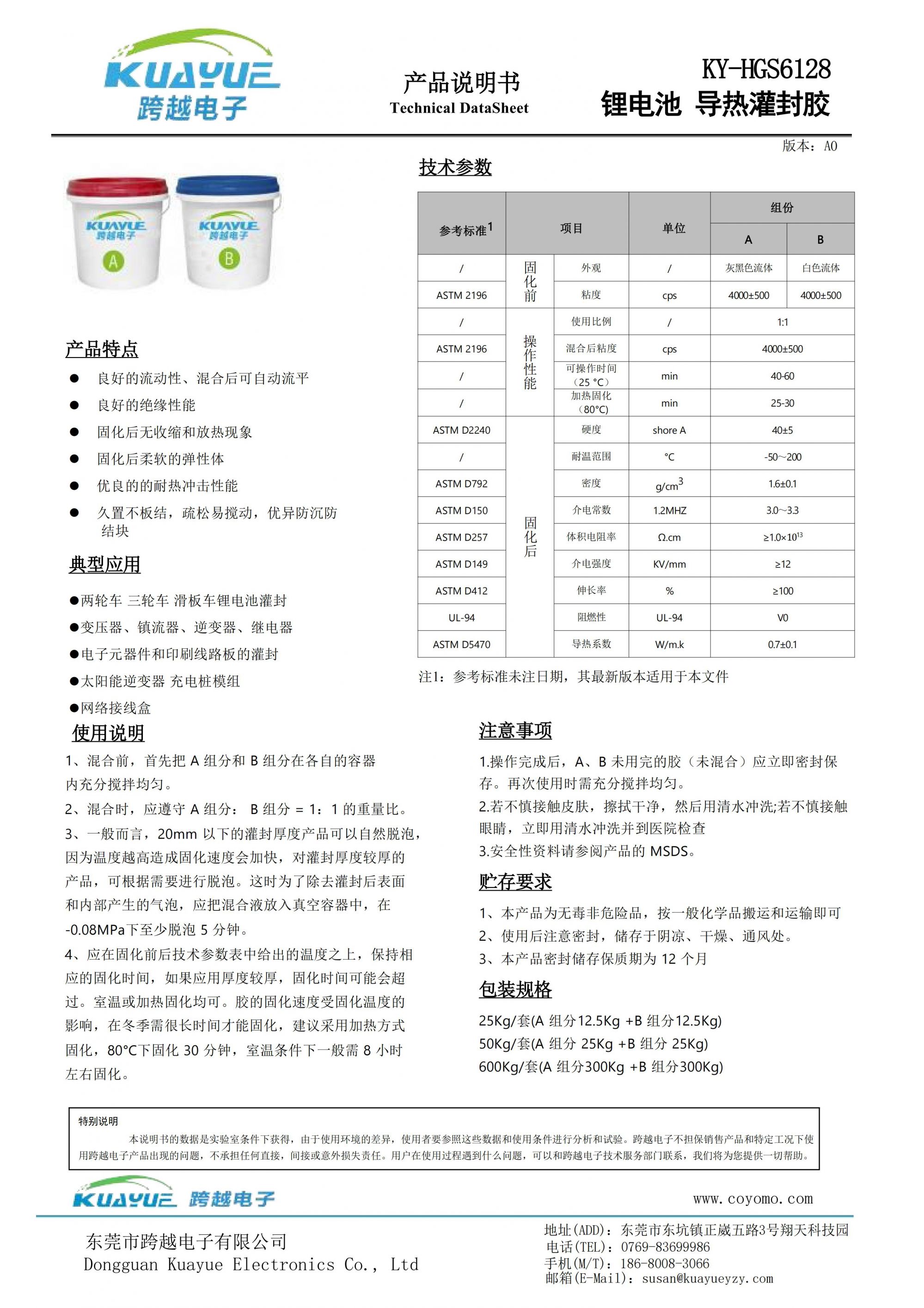 ky-hgs6128锂电池 导热灌封胶