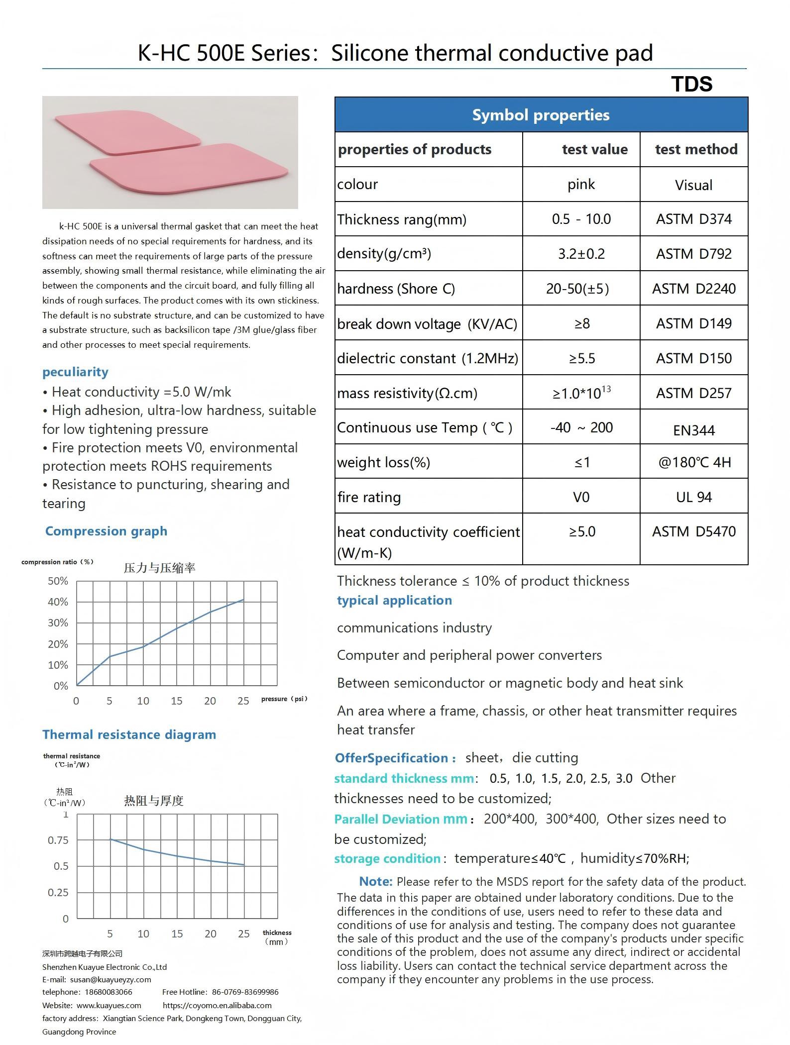 k-hc 500e is a universal thermal gasket that can meet the heat dissipation needs of no special requirements for hardness, and its softness can meet the requirements of large parts of the pressure assembly, showing small thermal resistance, while eliminating the air between the components and the circuit board, and fully filling all kinds of rough surfaces. the product comes with its own stickiness. the default is no substrate structure, and can be customized to have a substrate structure, such as backsilicon tape /3m glue/glass fiber and other processes to meet special requirements.