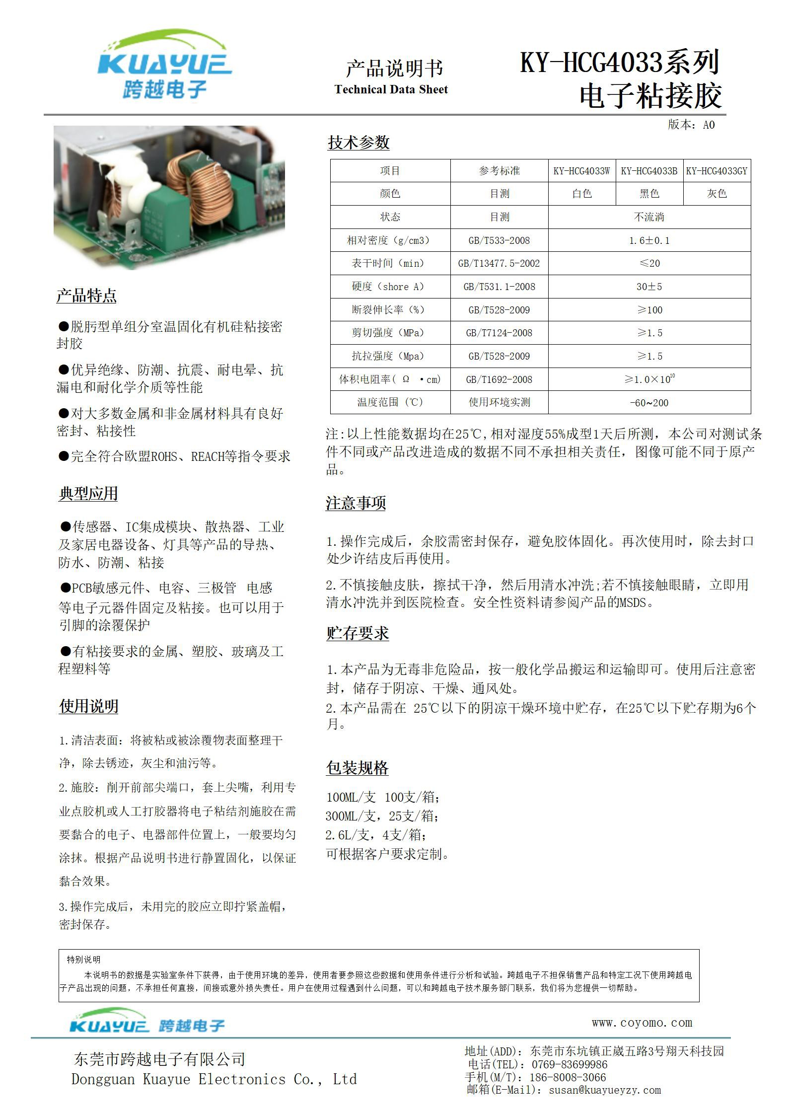 ky-hcg3033系列粘接胶产品规格书